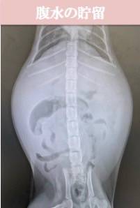 腹水や胸水が溜まってきます。腹水では腹囲膨満、胸水では呼吸困難が認められることが多いです。